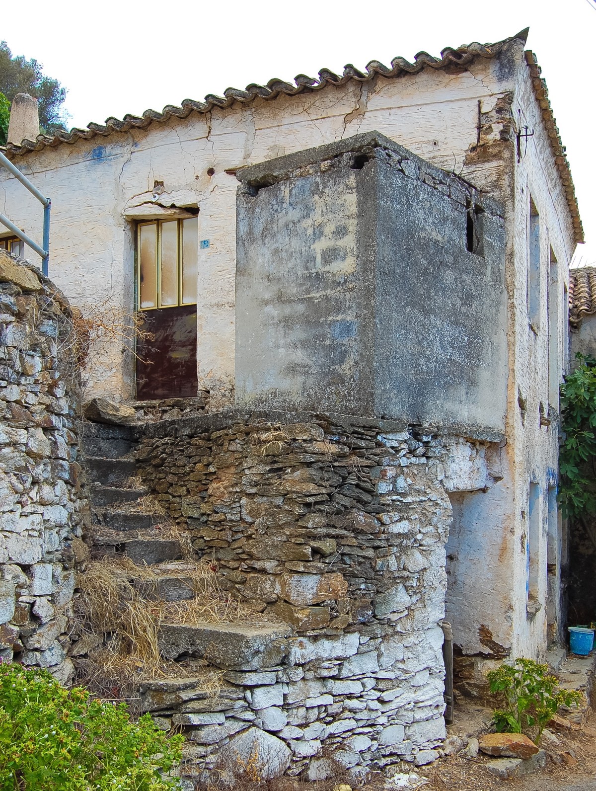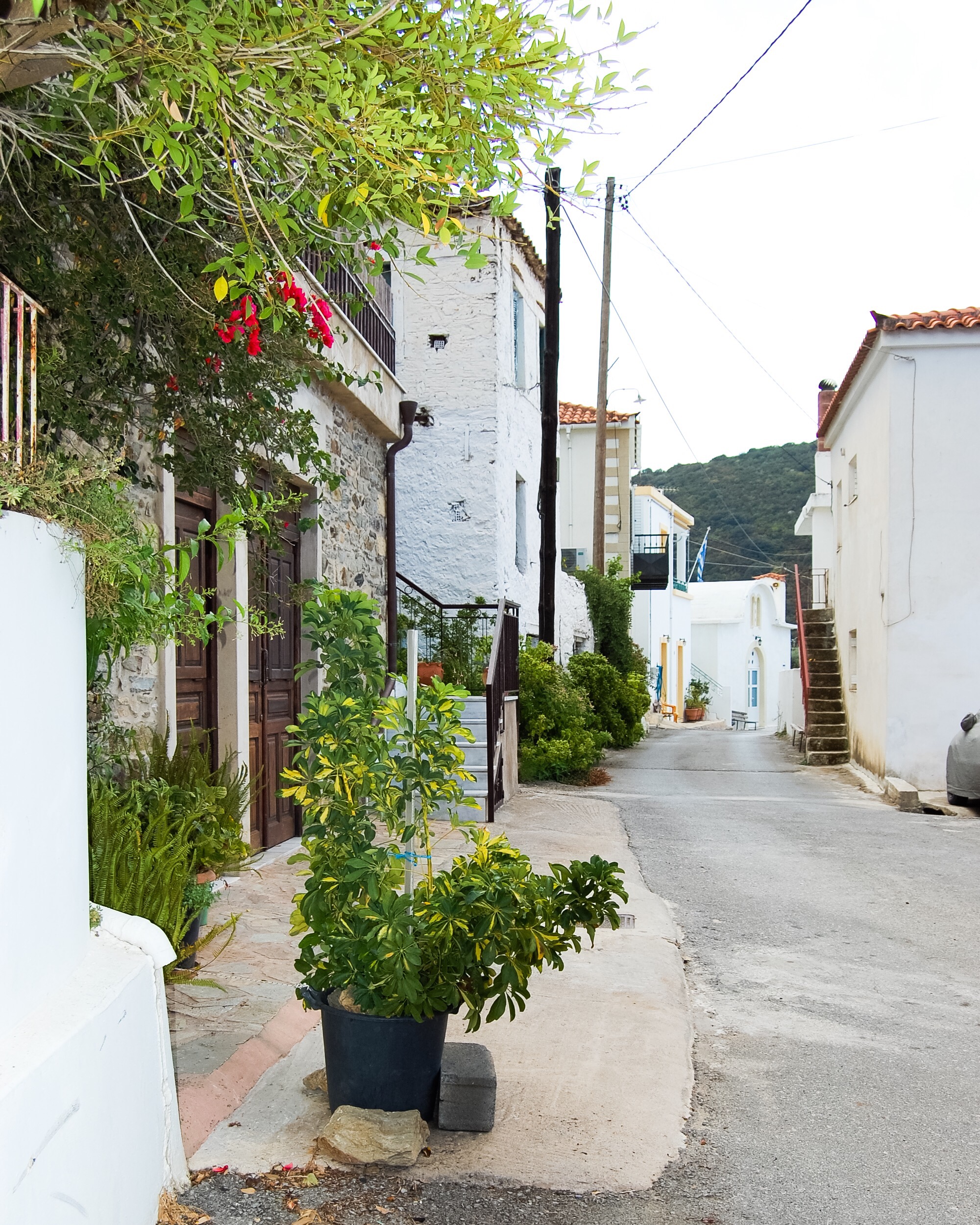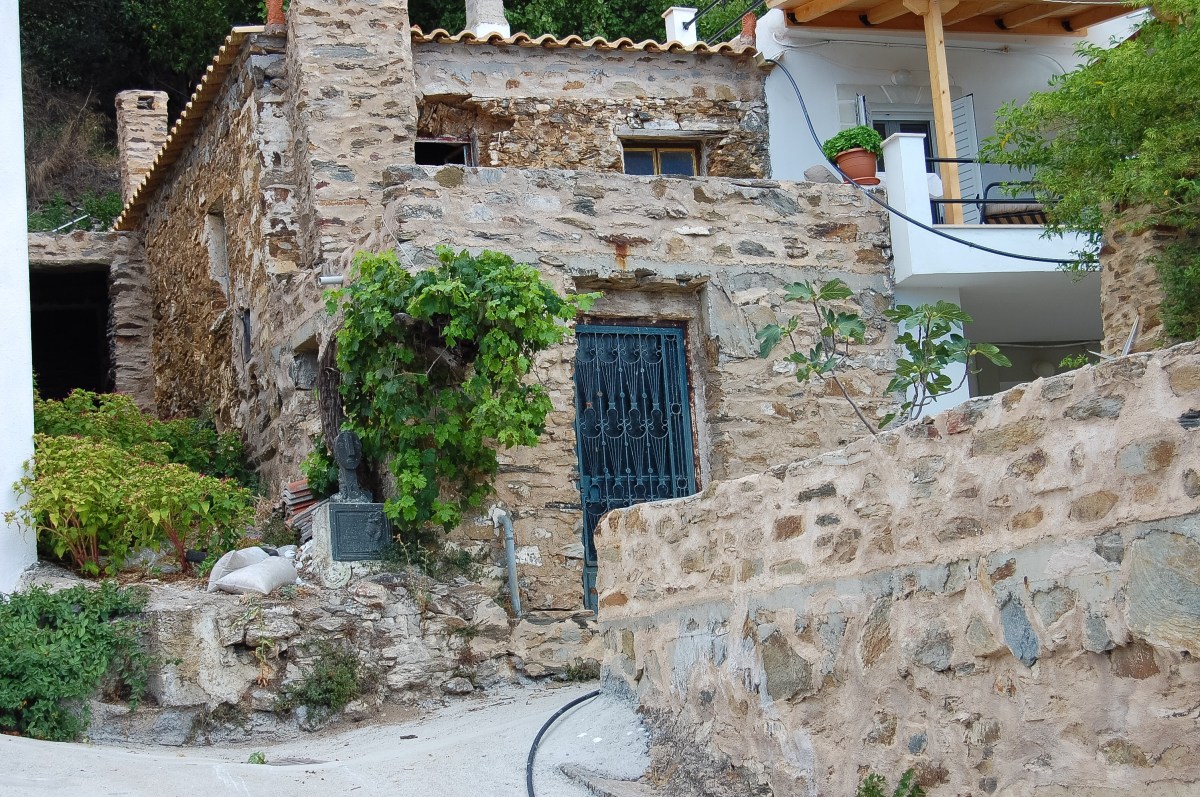 Update: We revisited Kriovrissi on a cloudy day in September, 2016. Some of the homes had been modernized and repainted since the original photos were taken. The village of approximately 20 close-knit families remains a blend of old stone structures and renovated white stucco homes.